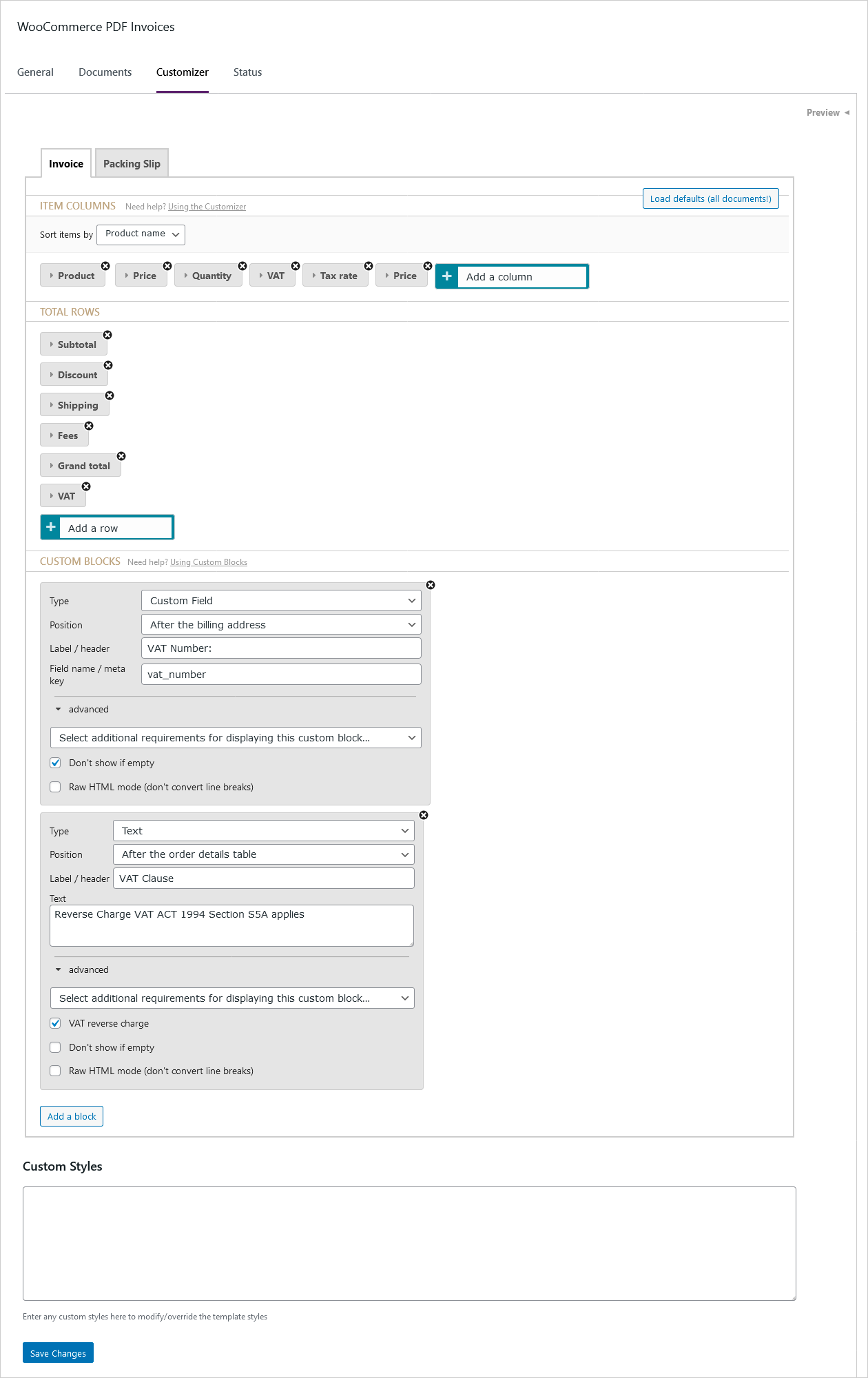 This download bundles 2 premium templates for the FREE WooCommerce PDF Invoices & Packing Slips plugin (which can be downloaded here). The content of these templates (all columns and totals) can be completely customized to your taste with an easy to use drag & drop customizer – check out the screenshots below! The customizer also works with the Professional Extension (Proforma Invoices, Credit Notes & more!).